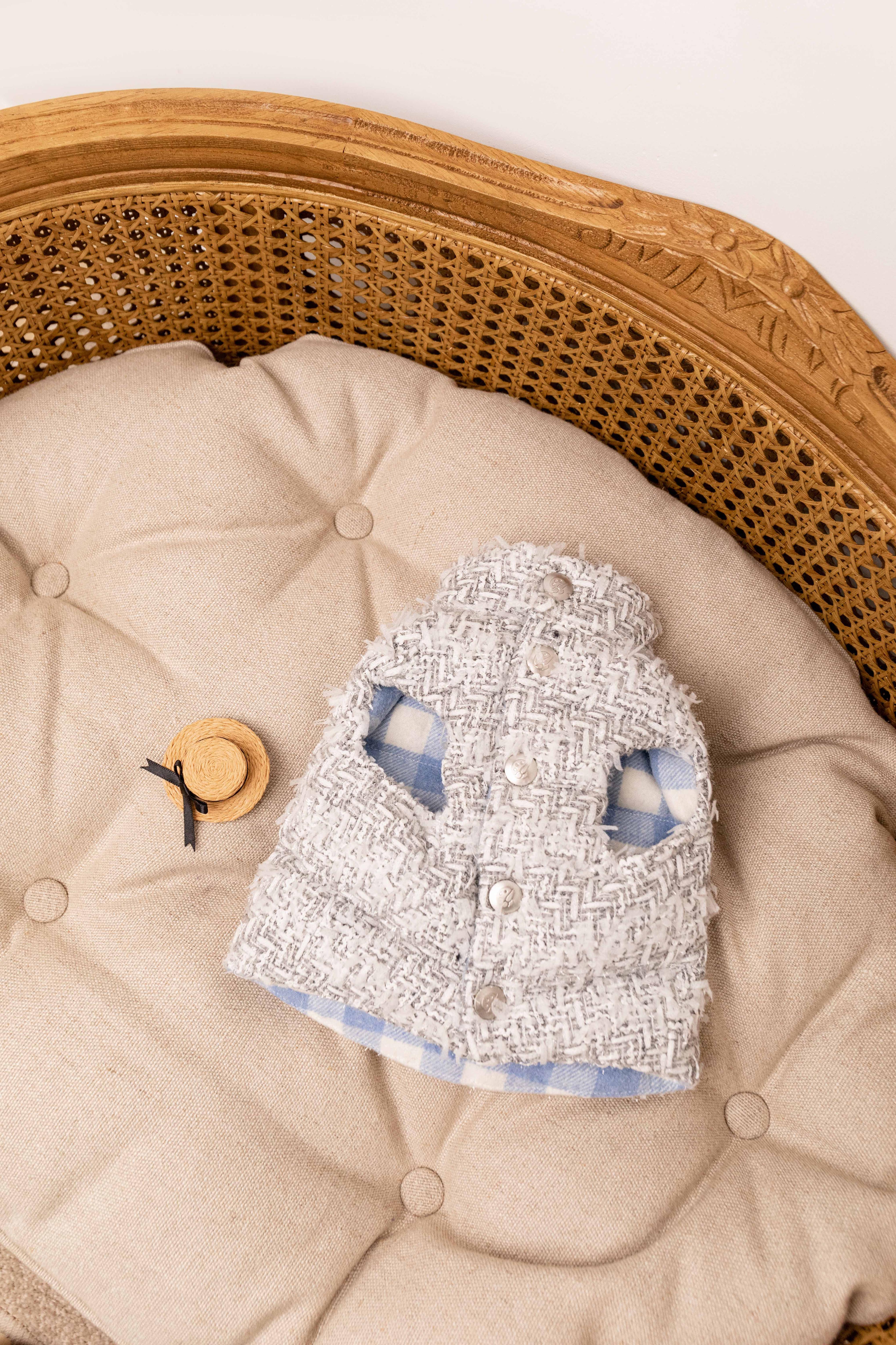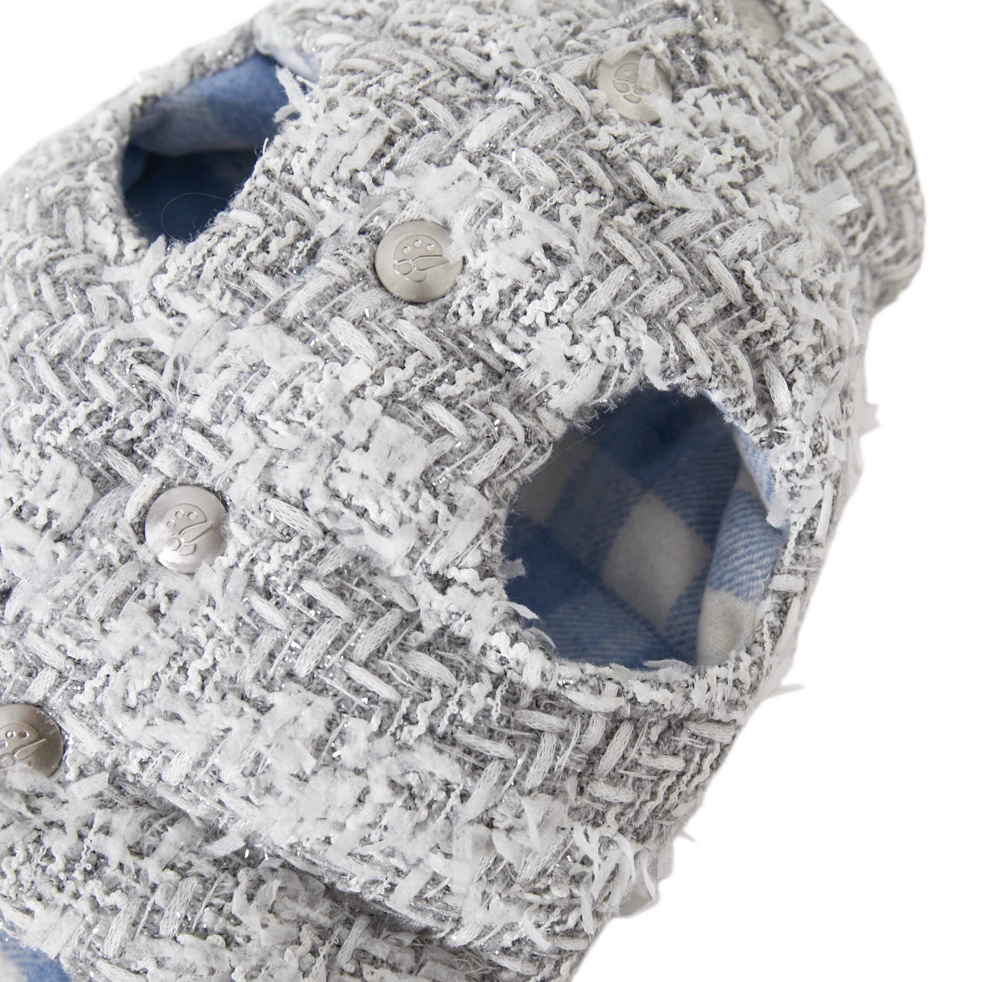 Elevate your pup's winter wardrobe with this fabulous silver plaid puffer jacket! Inspired by high-fashion design, this reversible style flips between chic plaid and solid silver, giving your furry friend two looks in one. The cozy puffer construction keeps them warm during chilly walks, while the lightweight material ensures they can still prance around comfortably. Perfect for fashion-forward pet parents who refuse to compromise on style—because your dog deserves to be as glamorous as you are!